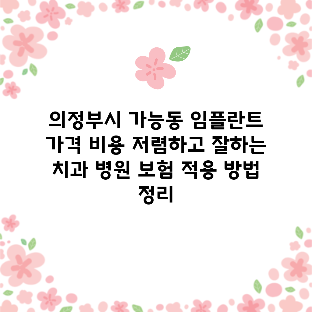 의정부시 가능동 임플란트 가격 비용 저렴하고 잘하는 치과 병원 보험 적용 방법 정리